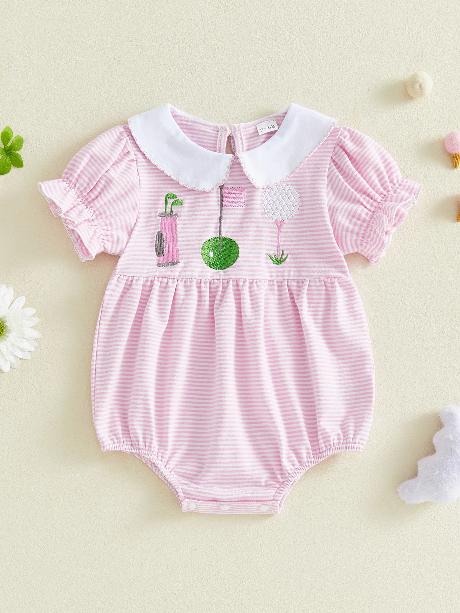 Baby Girl Golf Embroidery Romper Short Sleeve Doll Collar Striped JumpsuitSize (cm):
